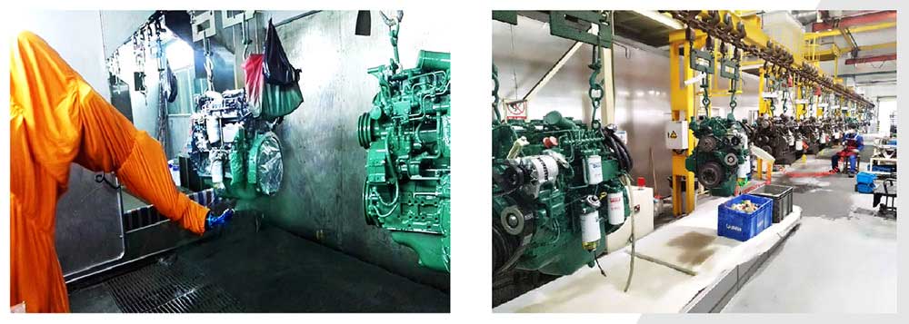 噴漆生產(chǎn)線集成工業(yè)機(jī)器人、在線自動(dòng)識(shí)別、自動(dòng)噴控、自動(dòng)清洗噴頭等先進(jìn)技術(shù),實(shí)現(xiàn)了對(duì)生產(chǎn)線上不同規(guī)格型號(hào)的柴油機(jī)進(jìn)行自動(dòng)識(shí)別,自動(dòng)調(diào)色配色,自動(dòng)切換機(jī)器人噴涂路徑程序進(jìn)行噴漆。生產(chǎn)線已在玉柴股份公司五個(gè)噴漆工段使用,提高了涂裝質(zhì)量,實(shí)現(xiàn)了生產(chǎn)線柔性化生產(chǎn),減少了噴涂作業(yè)和輔助人員,具有很好的智能制造應(yīng)用示范效果。