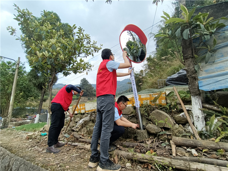 根據(jù)機械院與峰洋村在安全隱患排查工作中發(fā)現(xiàn)的問題,志愿者團隊在村內5處三叉路口安裝了凸面鏡,有效解決了農村拐彎處視線不足的交通安全隱患。