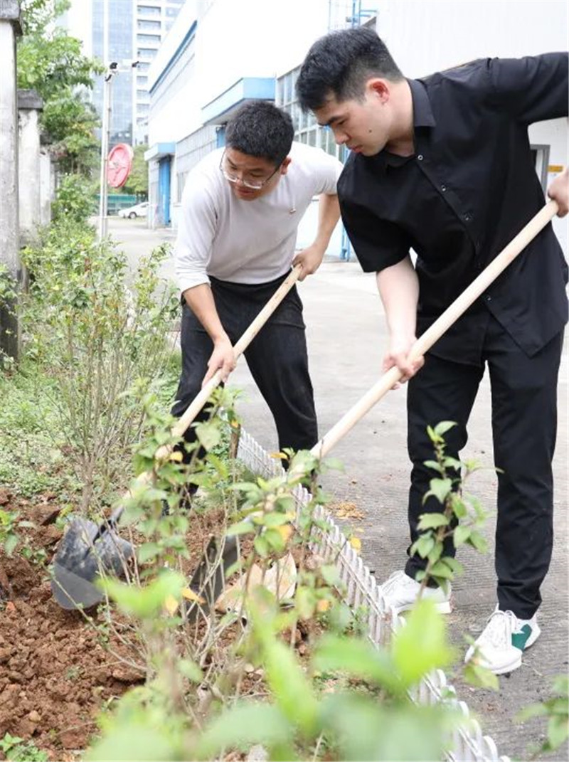 經(jīng)過大家一個上午的辛勤勞動,70株新栽種的三角梅、櫻花、茶花、石榴、月季等花木整齊美觀地樹立在院內(nèi)車間周圍,為初春大地增添了一份綠意,成為園區(qū)一道亮麗的風景線。這次義務植樹活動不僅增進了員工的溝通與交流,還綠化了家園,調(diào)動了大家保護和改善生態(tài)環(huán)境的積極性。