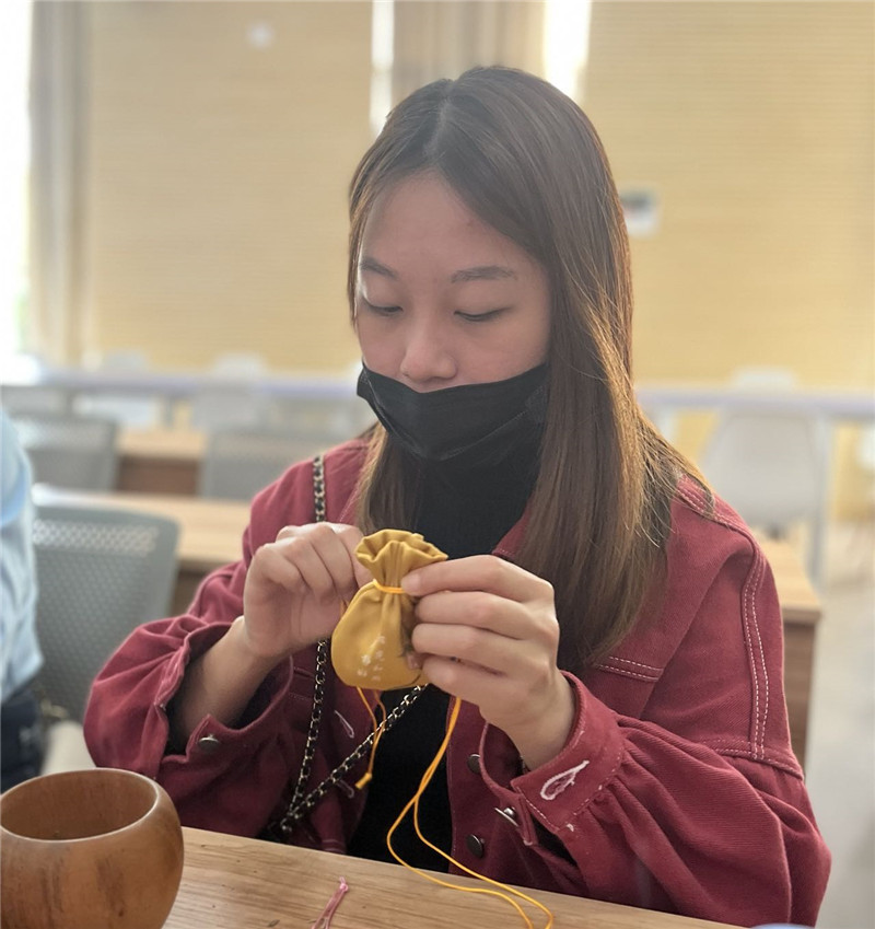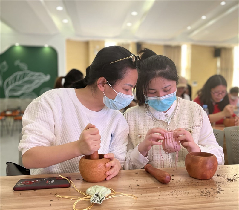 “吳茱萸芳香去濕、疏肝理氣,薄荷可以提神醒腦,大家隨身佩戴,可以在人體周圍形成高濃度的小環(huán)境......”在指導(dǎo)老師的解說中,女職工們一起認(rèn)識了艾葉、薄荷、紫蘇、吳茱萸、花椒等草藥,以及每種草藥的獨特功效,并通過動手實踐,制香、聞香,更生動地認(rèn)識藥用植物與養(yǎng)生知識、傳統(tǒng)文化的關(guān)聯(lián)。
