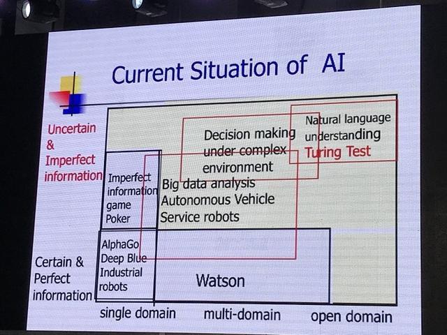 “評價人工智能獲得的成果,我們可以從這五件事來看:深藍打敗人類國際象棋冠軍;IBM 在電視知識競賽中打敗了美國的前兩個冠軍;2015 年微軟在ImageNet 上做圖象識別,誤識率略低于人類;百度、訊飛也都宣布在單句的中文語音識別上識別準確度略低于人類和AlphaGo 打敗了李世石。前兩件事歸為一類,后三件事可歸為另一類。