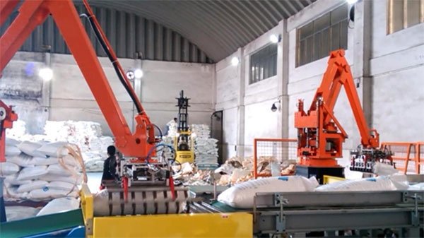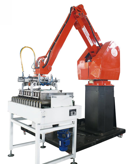 1.基于圓筒坐標(biāo)系開發(fā)的多關(guān)節(jié)機(jī)器人,占地面積小,功率消耗低,碼垛效率高,破包率小,達(dá)到國內(nèi)先進(jìn)水平。