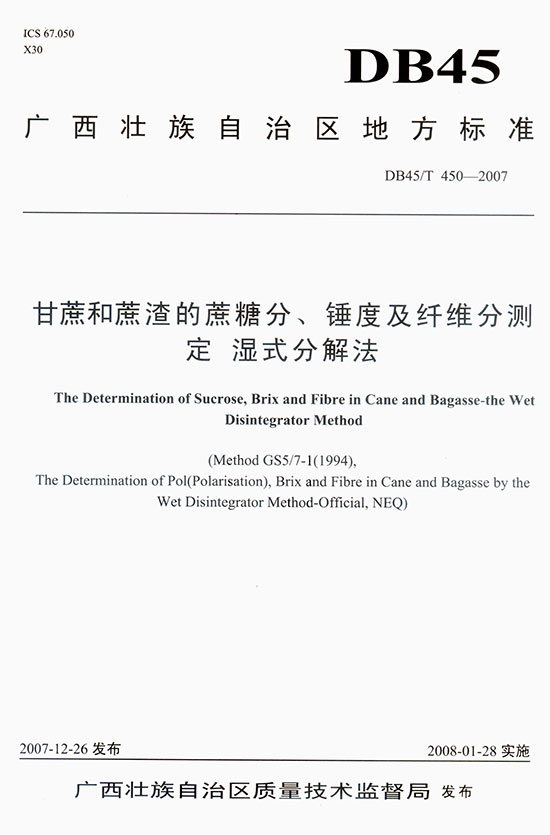 配套該設(shè)備應(yīng)用制樣檢測的方法,已發(fā)布為廣西地方標(biāo)準(zhǔn)