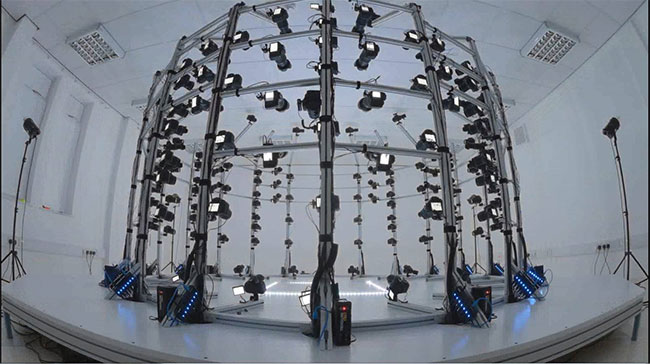 該系統(tǒng)通過軟件控制128個(gè)高精度CCD攝像頭進(jìn)行陣列式多角度同時(shí)拍照,形成0.1秒內(nèi)拍攝物體個(gè)角度的照片組,將照片組導(dǎo)入專業(yè)數(shù)據(jù)處理軟件,轉(zhuǎn)換成高質(zhì)量帶貼圖的色彩三維人像,并能實(shí)現(xiàn)對(duì)動(dòng)態(tài)物體的瞬時(shí)捕捉。
